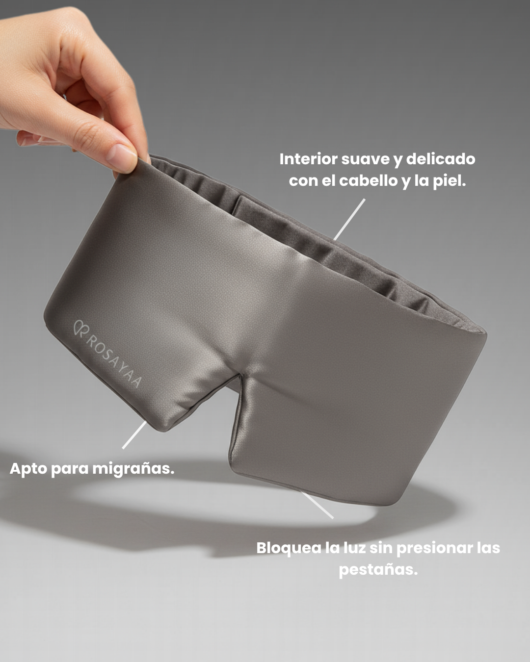 The silky-soft Rosayaa Deep Sleep Mask, made from breathable mulberry silk, blocks 100% of light for calm, deep relaxation, and fewer stimuli during migraine. Silver ion technology eliminates 99.7% of bacteria, helps reduce puffiness and dark circles, and leaves you feeling refreshed in the morning.